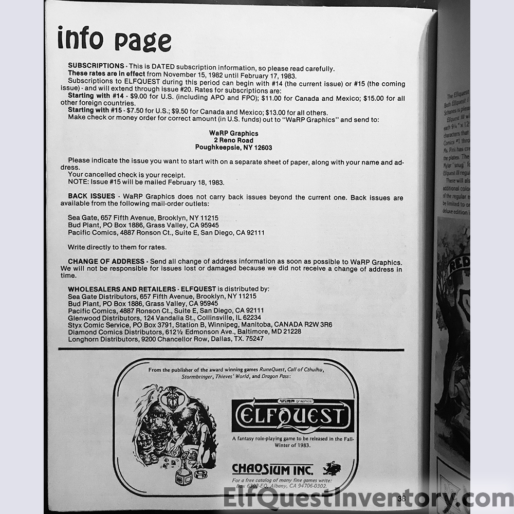 ad for the ElfQuest rollplaying game by Chaosium Inc,