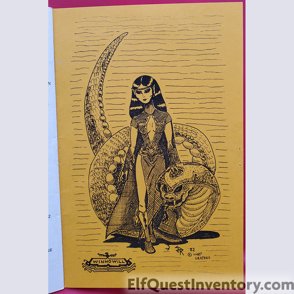 Elfquest Lodestone issue 8. Cover art by Tom Howell, jr. The inside front cover indicates this was for Summer 1982. The inside back cover is drawn by Maggie Johnson. Page 7 has a preview of Wendy Pini art inside of Journey to Sorrow's End the novelization.