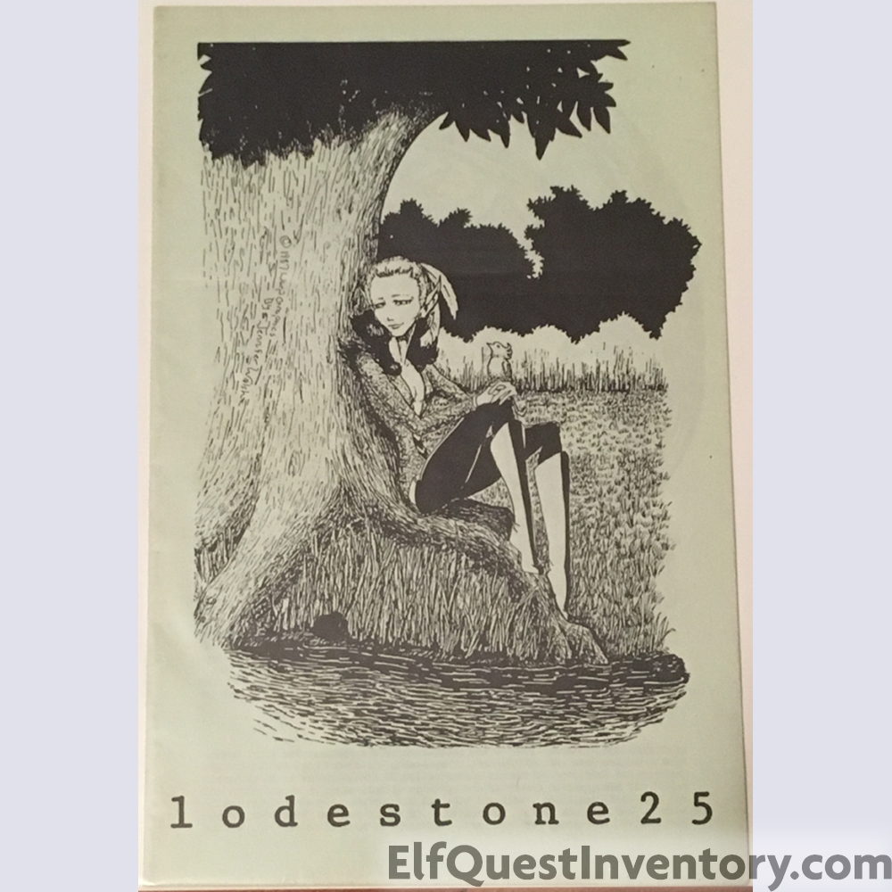 Elfquest Lodestone issue 25 Cover by Jennifer Walsh. Another one of the shorter Lodestone issues. Contains a holt listing, some fan art and writing, character sketches by Wendy Pini, information about the ElfQuest animation project, and Siege at Blue Mountain cover previews.
