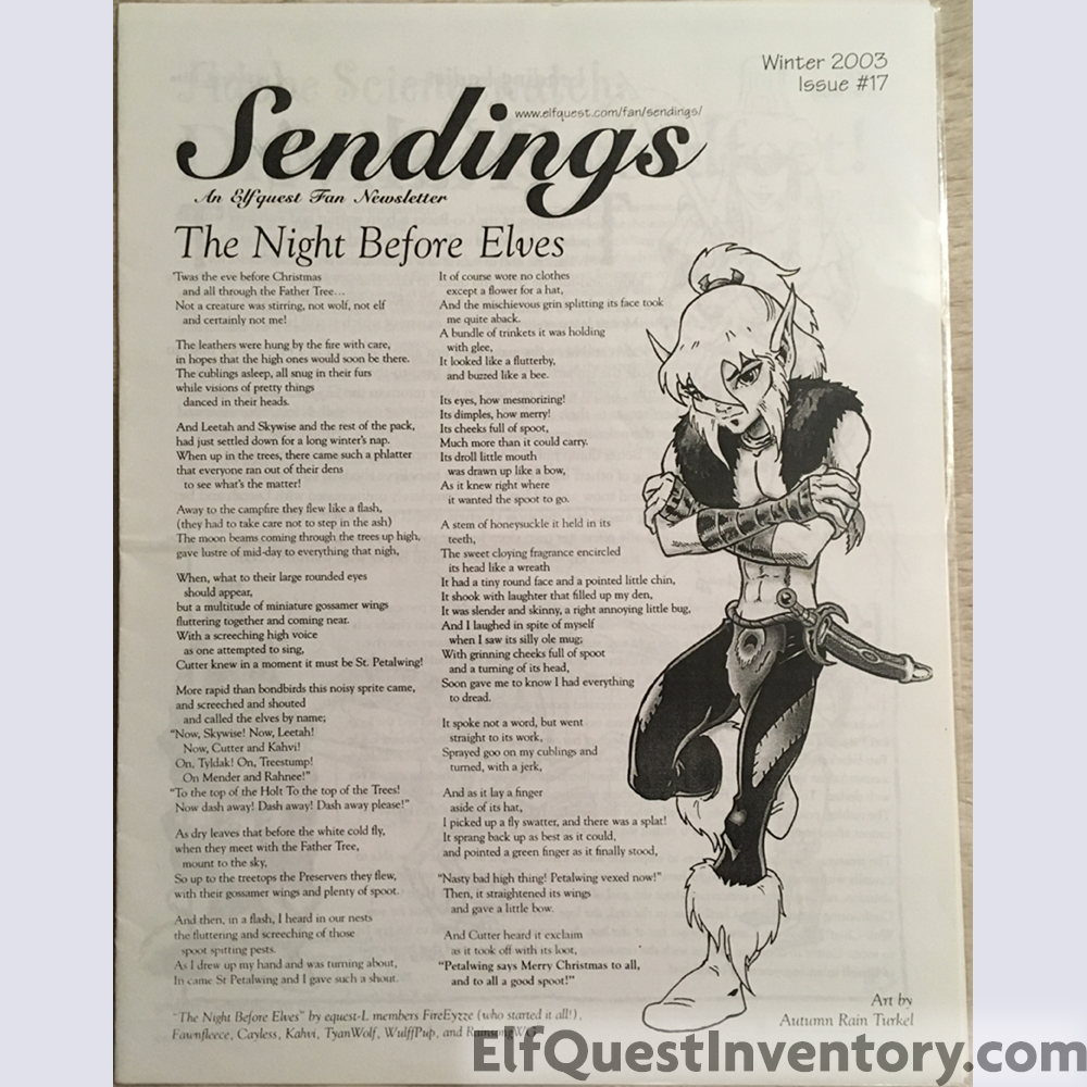 ElfQuestInventory.com is not affiliated with Warp Graphics, it is a fan site created with the goal of cataloging ElfQuest merchandise that has been made across the globe. Many, if not most, of the items are not currently available, and may be one of a kind. If you see something you would like to add to your inventory, please add it to your want list here, or check your local comic shop, ebay, amazon, or other online resources. Warp Graphics has a Shop page with links to help you on your hunt. They also have an ebay store.