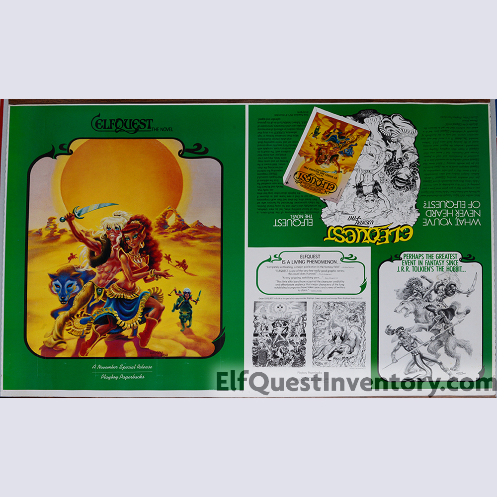 This is an uncut copy of the promotional poster for the Playboy Press edition of Journey to Sorrow's End. It is printed so that it could be "book folded" in quarters and inserted into a magazine or other publication. Because this is uncut, you are seeing the front and back of the poster at the same time.