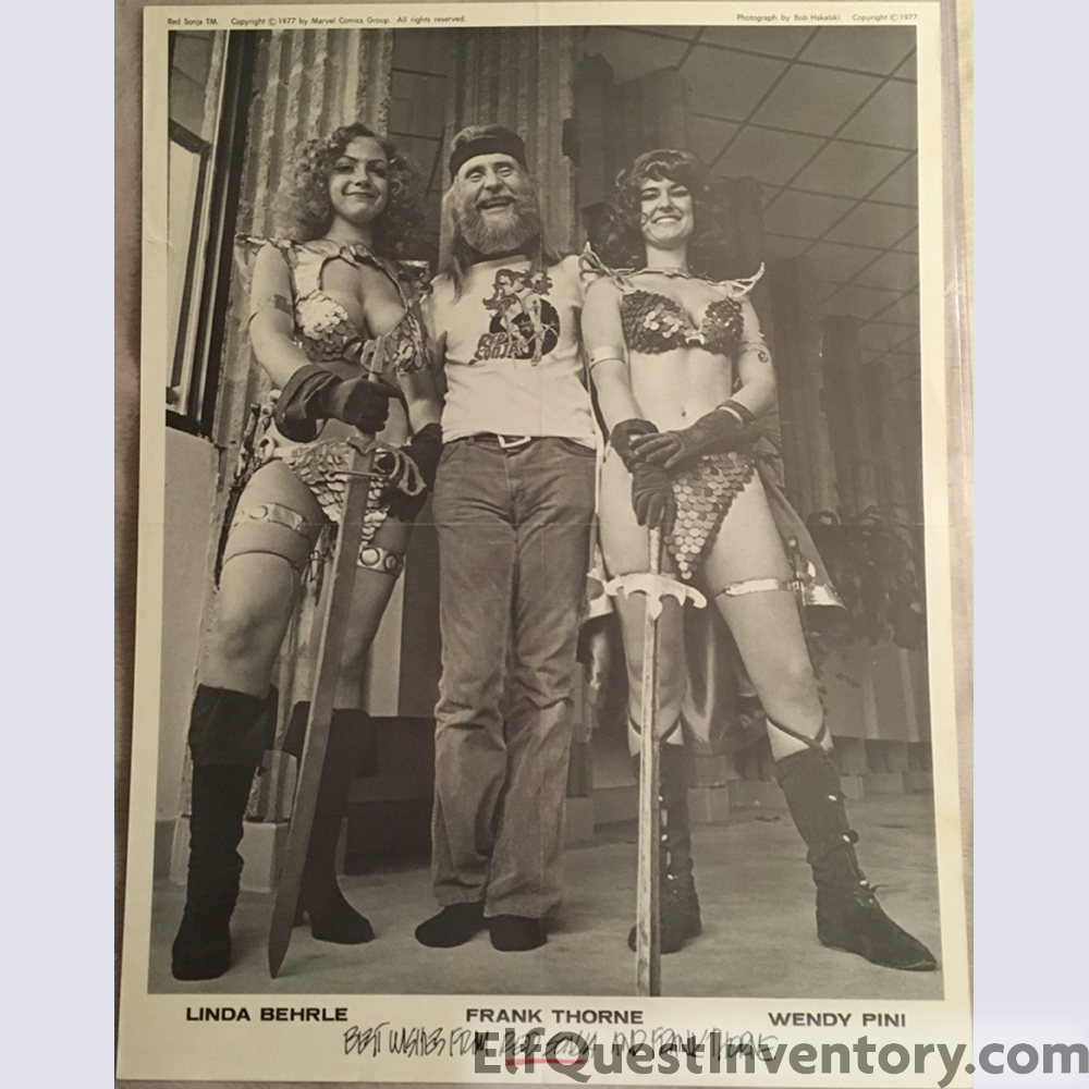 This poster shows Frank Thorne, Wendy Pini and Linda Behrle all from the Wizard and Red Sonja show.
