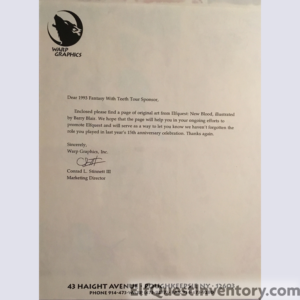 Original page from New Blood book 14 page 21 with letter from WaRP.