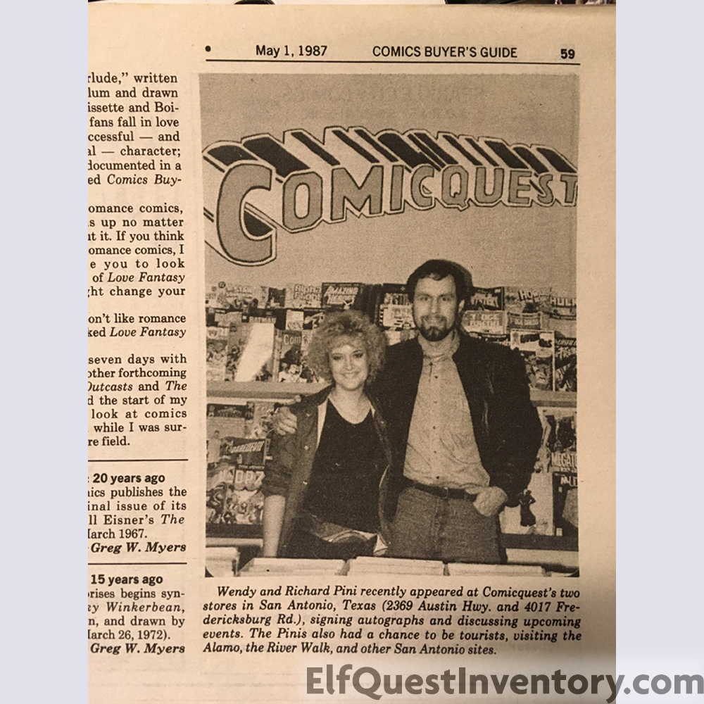 ElfQuestInventory.com is not affiliated with Warp Graphics, it is a fan site created with the goal of cataloging ElfQuest merchandise that has been made across the globe. Many, if not most, of the items are not currently available, and may be one of a kind. If you see something you would like to add to your inventory, please add it to your want list here, or check your local comic shop, ebay, amazon, or other online resources. Warp Graphics has a Shop page with links to help you on your hunt. They also have an ebay store.