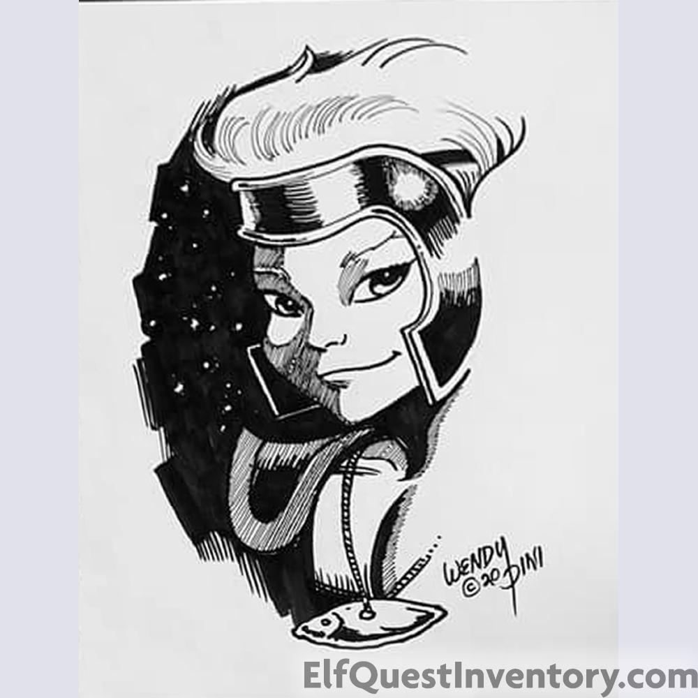 Original Wendy Pini drawing of Skywise done at Comic Fest, March 5-8, 2020. This was an experiment in the chiaroscuro style. As per a FaceBook post by Richard Pini.