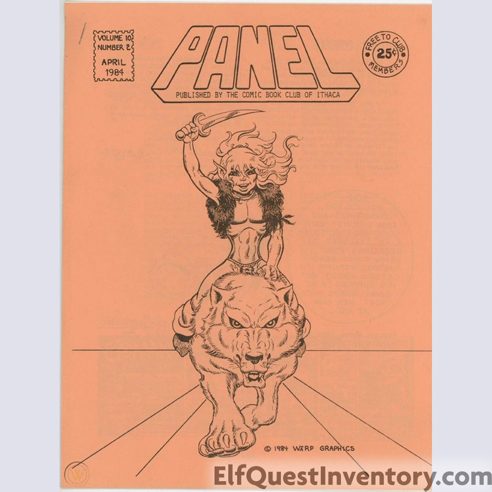 The Panel fanzine newsletter April 1984 Elquest Wendy Pini coverVERY RARE Description:The Panel, April 1984. Volume 10, Number 2 . Wendy Pini Elfquest cover and interior illustration. This was a newsletter published by the Comic Book Club of Ithaca during the same month as their Ithacon 9 convention.Drawings by Ithacon guests include Murphy Anderson, Carl Potts, Tom Mandrake It is a letter-size, 8.5" x 11"fanzine-style publication with one staple in the upper-left corner. The cover is on peach paper and the rest of the pages are white.