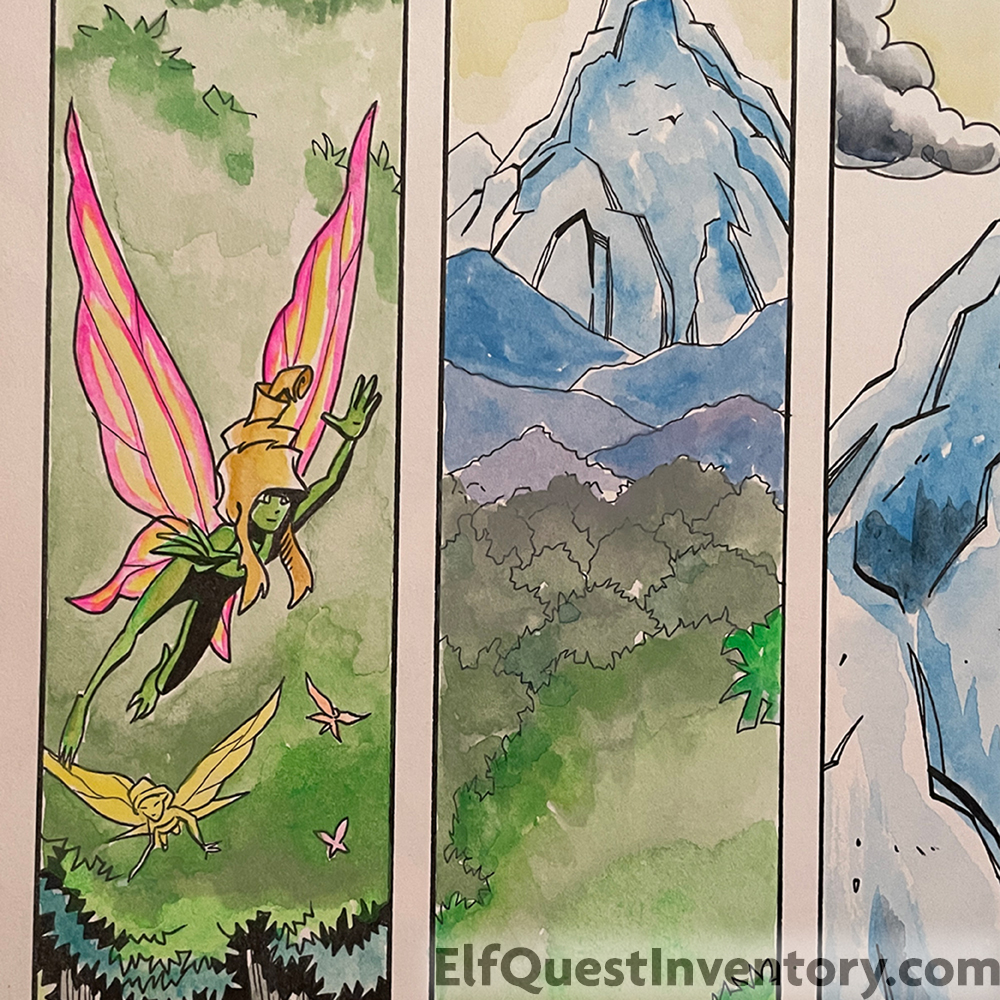 Original pencils, inks and colors on watercolor paper. All artwork completed on a single page. Pencils and ink by Bill Neville, watercolor by Tara Bloomquist